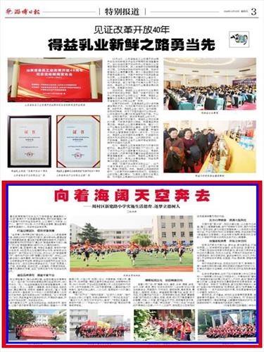 12月20日,《淄博日报》刊发周村区新建路小学德育工作专版,图文如下: 向着海阔天空奔去 ——实施生活德育,逐梦立德树人 著名教育家陶行知先生大力倡导塑造“真善美的人格”,弘扬“爱满天下”的至善至爱精神。学校作为中国陶行知研究会实验学校,以立德树人为宗旨,以“勤于心 健于行”为训导,大力开展生活德育,建设温情校园,培养有温度的人,促进学生全面发展。 一、打造过硬团队,为生活德育提供坚强保障 全员育人导师责任制”理念深入人心,人人都是德育工作者。连续三年的千名教师大家访,参与率100%。邀请全国提问力专家秦英教授、著名亲子教育专家张琼老师、中国关工委家庭教育导师刘丽芳进行“真正好”家庭教育学习培训,编写了《“好父母”家庭教育培训教材》《礼仪》等校本教材。 党建带队建,团建带队建,传承红色基因,争做时代新人。37名党员、8名团员处处起模范带头作用。新老班主任“青蓝结对”,举行班主任工作论坛。成立16人的“家庭教育団训师”,每年均开设6—9周“智慧父母培训班”,80%以上的家长参与培训。每年暑期,举行新生家长“幼小衔接”培训。 三级家委会有序运转,家委会主任连续两年当选“区优秀家委会主任”,担任区联合家委会主任。“五老”志愿者人老心不老,走进课堂,走进社团,义务值班,开展课后服务,谱写着无私奉献的华章,全区“发挥五老作用”现场会在我校召开。 二、建设品牌课程,为生活德育搭建丰富平台 树立课程意识,强化品牌创建,全面构建生活德育体系。“五小”逛大街作为学校德育品牌已经坚持10年。2017年5月28日,“五小”社会实践基地在古商城隆重挂牌,小导游、小记者、小艺人、小画家、小摄影家,走向古商城,活跃在大染坊、票证博物馆、将军府,提素质,炼本领。“星火”志愿服务队多年来一直继承“三十年如一日照顾孤寡老人刘爷爷”的优良传统,每年定期走出校门志愿服务。“红十字志愿小分队”的队员经常宣传应急救护知识,开展救护演练。开辟“红领巾自主乐园”,促进自主成长。 举行象棋文化节、全员足球运动会,校园读书节,面向全体,让每个孩子都能有展示的机会和舞台。每逢六一,开展美德少年、十佳少年、校园小名士、书香家庭、书香少年、墨香少年、足球明星、博弈之星寻访竞选活动,发挥榜样的作用。2017-2018年,产生4名区级美德少年,1名区级新时代好少年、1名市级美德少年,1名市孝德明星。认真组织每次开学典礼、每年的毕业典礼、入队仪式,每周组织一次升旗仪式、暮省仪式。 “我们的节日”“唱响中国梦”“红领巾心向党”“践行社会主义核心价值观,向身边榜样学习”“寻访红色足迹”“喜迎十九大,我向习爷爷说句心里话”“传承红色基因 争做时代新人”“平安六加一”“保护周村蓝”等活动开展得有声有色。 三、雕琢校园文化,为生活德育创设精美空间 修建小荷广场,将“健康、快乐,善思、乐学,博爱、诚信,合作、创新,感恩、责任”的成长目标和“人生如棋”的设计理念完美结合。灵峰园内,竹林湖石,垂柳披拂,清泉喷涌,景色宜人。楼梯间、走廊上、教室里都展示着书法、绘画、手工作品,印证着师生行知合一、思考探索的足迹。围绕“真善美乐爱”进行班级文化建设,班徽、班牌、班训无不彰显着孩子的智慧。书架、小书屋、图书室全天开放,班班建有读书角,人人都有心爱的小书屋。“养正阅读”“行知小先生”评选活动开展的如火如荼。一个个人文化细节,使校园文化在有限的空间里演绎着无限的内涵。 四、关注心理健康,让生活德育洒满七色阳光 加盟中国“爱沙游”,购买21套沙盘,沙盘作文进课堂。建立心理健康档案,举行“明确学习目标,提升内在学习动力”团体活动。参加中国正面管教第一人张宏武大型报告培训会,开设为期半年的《正面管教》课程。向全体教师推荐《教室里的正面管教》,向全体家长推荐《家庭中的正面管教》,引导教师和家长共同关注孩子的心理健康。 五、加强家校共育,为生活德育开拓立体空间 经常召开家长代表大会、家长会、家长委员会,打造家校同盟。上、放学期间安全值班、全员运动会、跳蚤市场、六一节等大型活动均有家长积极参与。家长助力,带领学生到附近的风景名胜、科技文化场馆,开展校外体验式学习。家长资源进校,举办百家讲坛,宣讲法律知识,谈论孔子和《论语》,开设特色校本课程,如国画、书法、剪纸等,课程资源更加丰富。 举行体验式家长会。在班主任的引导下,群策群力,就某一些家长特别感兴趣、特别困惑的问题进行研究讨论,找到解决问题的方法策略,并共同约定及时运用到家庭教育中。 弘扬志愿者精神。注册了区内首家青少年社工服务机构---瑜晖青少年社会工作服务中心,对精准扶贫“建档立卡”数据库中登记的青少年进行入户访问,参与 “爱绿护绿、美化环境”公益宣传活动及暑期国学班志愿者服务,参加“移风易俗 树新风”志愿服务,组织参加在周村特教中心举办的“全国17地市特奥联谊”志愿服务,参加“世界摄影大会”志愿服务……系列活动的组织开展,将志愿者精神在学生心中播撒,发扬光大。 春华秋实,岁月鎏金,生活德育硕果累累:省家庭教育示范基地、市少先队工作红旗单位、市“百佳社团”、区鼓号操展示一等奖等荣誉记载着我们踏实