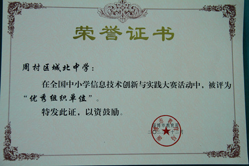 | 周村区城北中学荣获全国中小学信息技术创新与实践大赛优秀组织单位称号 | |||
