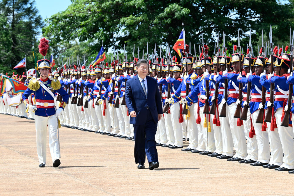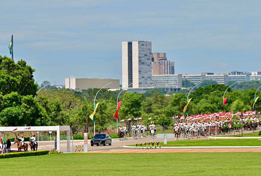 新华社巴西利亚11月20日电(记者倪四义 陈威华)当地时间11月20日上午,国家主席习近平在巴西利亚总统官邸黎明宫同巴西总统卢拉举行会谈。两国元首宣布,将中巴关系定位提升为携手构建更公正世界和更可持续星球的中巴命运共同体。 当地时间11月20日上午,国家主席习近平在巴西利亚总统官邸黎明宫同巴西总统卢拉举行会谈。新华社记者 李学仁 摄 初夏时节的巴西利亚,天朗气清。黎明宫内,绿草如茵,450名威武礼兵整齐列队。在120名龙骑兵护卫下,习近平乘车抵达黎明宫前广场。 卢拉总统和夫人罗桑热拉热情迎接习近平,并为习近平举行隆重盛大欢迎仪式。 当地时间11月20日上午,国家主席习近平在巴西利亚总统官邸黎明宫同巴西总统卢拉举行会谈。会谈前,卢拉总统和夫人罗桑热拉热情迎接习近平,并为习近平举行隆重盛大欢迎仪式。新华社记者 李学仁 摄 当地时间11月20日上午,国家主席习近平在巴西利亚总统官邸黎明宫同巴西总统卢拉举行会谈。会谈前,卢拉总统和夫人罗桑热拉热情迎接习近平,并为习近平举行隆重盛大欢迎仪式。新华社记者 李学仁 摄 当地时间11月20日上午,国家主席习近平在巴西利亚总统官邸黎明宫同巴西总统卢拉举行会谈。会谈前,卢拉总统和夫人罗桑热拉热情迎接习近平,并为习近平举行隆重盛大欢迎仪式。新华社记者 翟健岚 摄 当地时间11月20日上午,国家主席习近平在巴西利亚总统官邸黎明宫同巴西总统卢拉举行会谈。会谈前,卢拉总统和夫人罗桑热拉热情迎接习近平,并为习近平举行隆重盛大欢迎仪式。新华社记者 翟健岚 摄 军乐团奏中巴两国国歌。两国元首一同观看仪仗队分列式。中巴儿童挥舞两国国旗热烈欢迎习近平。巴西艺术家用中文演唱《我的祖国》。 两国元首分别同对方陪同人员握手致意。 欢迎仪式后,两国元首举行会谈。 当地时间11月20日上午,国家主席习近平在巴西利亚总统官邸黎明宫同巴西总统卢拉举行会谈。新华社记者 李学仁 摄 习近平指出,很高兴在中巴建交50周年这个具有重要历史意义的年份访问巴西。刚才卢拉总统为我举行最高礼遇的隆重欢迎仪式,充分体现了对中巴关系的高度重视以及对中国人民的深情厚谊,令我深受感动。中国和巴西是东西半球两大发展中国家。回首过去50年,中巴关系跨越山海,探索出发展中大国相互尊重、互利友好、合作共赢的正确相处之道。巴西是首个同中国建立战略伙伴关系的国家、首个同中国建立全面战略伙伴关系的拉美国家。近年来,在我和卢拉总统战略引领下,两国日益成为命运与共的可靠朋友、共促和平的积极力量,中巴关系正处于历史最好时期,不仅增进了两国人民福祉,也维护了广大发展中国家共同利益,壮大了全球南方的力量和声音,为世界和平稳定作出突出贡献。 习近平强调,今天我们将中巴关系定位提升为携手构建更公正世界和更可持续星球的中巴命运共同体,同时将共建“一带一路”倡议同巴西发展战略对接,这是中巴关系发展的又一个历史性时刻,彰显了两国关系的全球性、战略性、长远性,符合两国人民普遍期待,将为双方推进各自现代化提供动力支撑,同时也彰显了中巴携手维护国际公平正义、促进世界共同发展的决心。中方愿同巴方一道,以人类前途为怀、以人民福祉为念,不断丰富新时代中巴关系内涵,做相互成就的“黄金搭档”,朝着构建人类命运共同体、构建更公正世界和更可持续星球的目标不断迈进,为人类和平和进步事业作出更大贡献。 习近平就未来两国关系发展提出4方面建议。 一是命运与共,不断巩固战略互信。在涉及主权、安全、领土完整等核心利益问题上坚定相互支持,做彼此信赖的战略伙伴和全球南方国家团结协作、互利共赢、共同发展的典范。加强文化、教育、青年等领域人文交流,夯实中巴命运共同体的民意基础。 二是发展与共,持续深化发展战略对接。把握共建“一带一路”倡议同巴西发展战略对接的历史机遇,深化经贸、基础设施、金融、科技、环保等重点领域合作,加强航天、农业科技、清洁能源等领域合作。中方把脱贫攻坚摆在治国理政的突出位置,支持巴方“零饥饿”计划,愿同巴方继续加强减贫合作,让两国人民过上更美好生活。 三是担当与共,为维护世界和平和正义展现中巴力量。践行真正的多边主义,坚持说公道话、办公道事,推动全球治理朝着更加公正合理的方向发展。中方高度重视巴西的国际地位和影响力,支持巴西在国际舞台上发挥更大作用,愿同巴方在联合国和金砖国家等多边机制内加强沟通协调,支持巴西明年担任金砖国家主席国工作,助推“大金砖合作”高质量发展,就坚持多边主义、完善全球治理发出更加响亮的金砖声音。 四是休戚与共,为构建人类命运共同体作出中巴贡献。中巴作为发展中大国,要带头共商共议,推动“同球共济”,合力应对关乎人类前途命运的全球性挑战。加强在绿色转型、可持续发展、应对气候变化、人工智能治理等领域合作。中方愿支持巴西办好《联合国气候变化框架公约》第三十次缔约方大会。 习近平指出,10年前,我在巴西利亚同拉美和加勒比国家领导人共同宣布成立中拉论坛,推动中拉关系进入了平等、互利、创新、开放、惠民的新时代。中方愿同巴方一道,继续办好中拉论坛,将共建“一带一路”倡议同拉美和加勒比地区发展优
