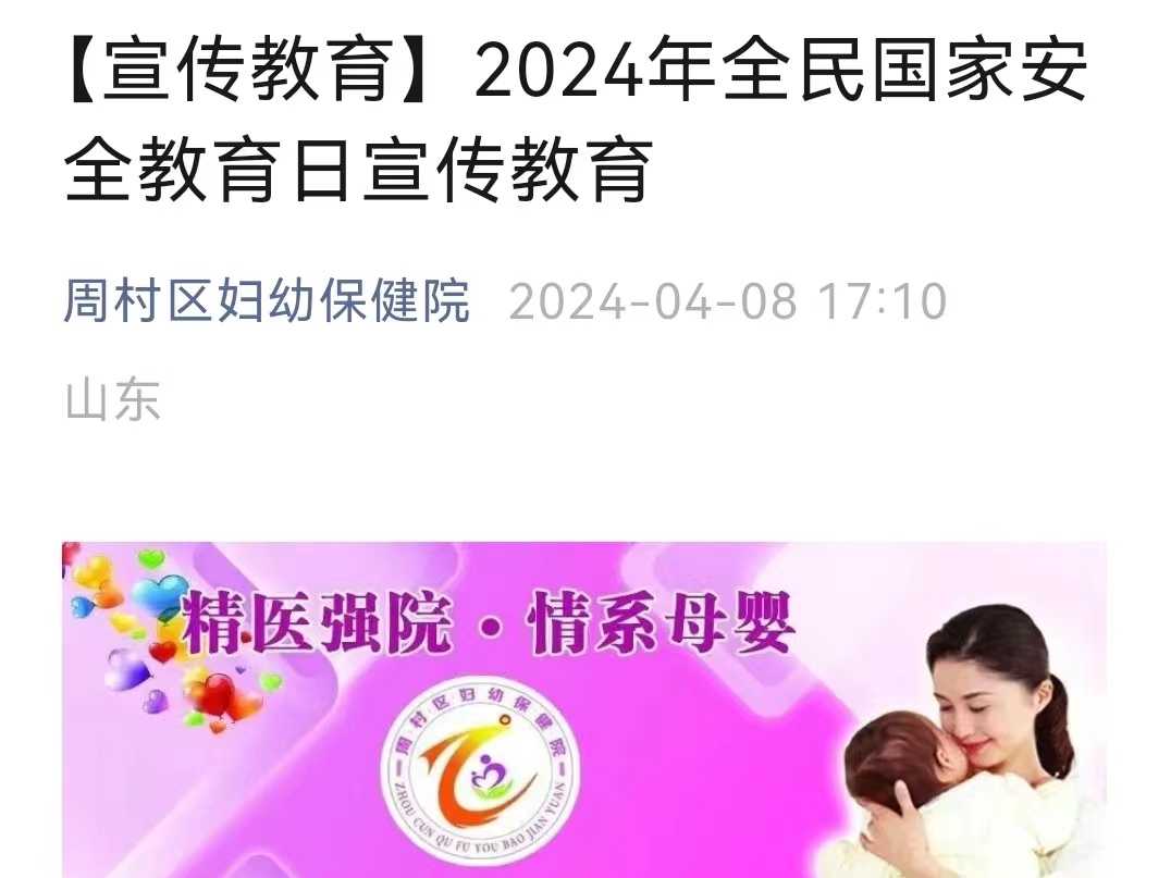 | 周村区卫健系统开展2024年全民国家安全教育日普法宣传活动 | |||
