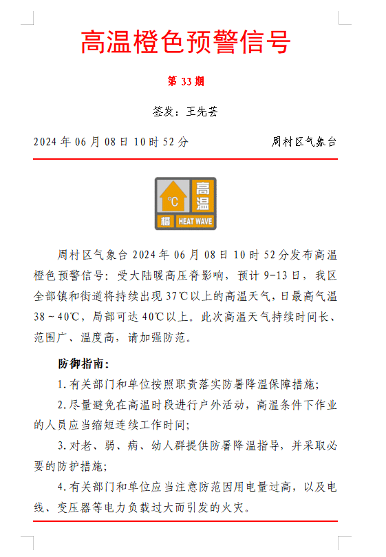 高温橙色预警信号第33期