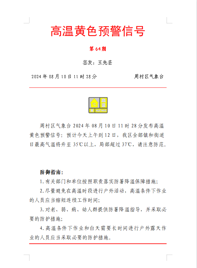 高温黄色预警信号第64期