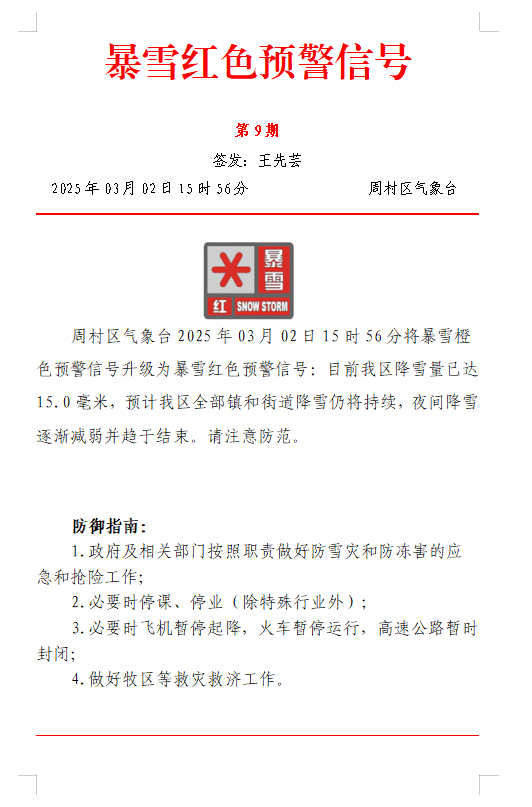 暴雪红色预警信号第9期