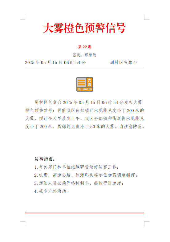 大雾橙色预警信号第22期