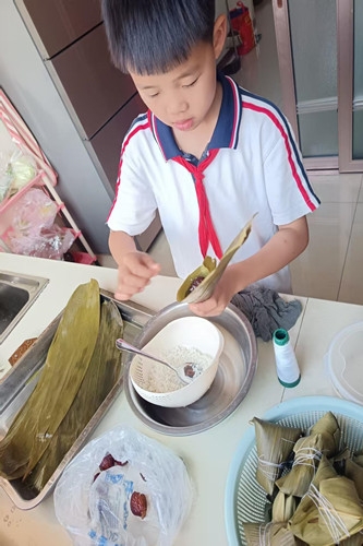 又是一年端午佳节至,为进一步加深师生对端午节文化内涵的感受,传承中华民族传统文化,近日,周村区城北中学开展了2025年“我们的节日·端午节”系列活动。 学校以班级为单位召开端午节主题班会,老师、同学们讲着端午节历史故事,用视频展示着节日习俗,同学们搜集、诵读爱国主义诗篇,进行着爱国主义教育,从不同角度感知端午,走进端午,品味端午,引导大家认知传统节日、过好传统节日,弘扬爱国主义精神,传承中华传统文化。学校还组织了丰富多彩的“劳动美”社会实践活动,开展了包粽子、绣荷包、书画比赛等形式多样、喜闻乐见的主题教育实践活动,让学生在活动中体验民俗文化,传承民族精神,涵养家国情怀,让学生们在快乐活动中体会传统节日的魅力。 生活即教育,师生在浓厚的传统节日氛围熏陶中弘扬了中华传统美德,了解了中华优秀传统文化的历史渊源、发展脉络、精神内涵,增强了文化自觉和文化自信,厚植了爱国主义情怀,丰富了学校德育教育内涵,提升了学校德育工作水平。(图:城北中学 文:王宝强) | |||