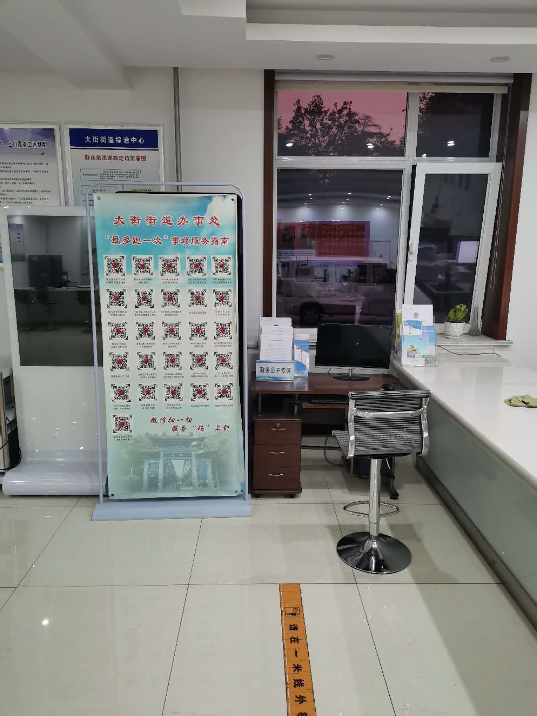 大街街道办事处设置常办审批服务事项二维码矩阵展架。将高频办理事项逐条形成二维码,办事群众只要使用手机扫描相应业务的二维码,立马就能知道所办业务的受理条件、申请资料、办理流程、办理时限和咨询电话等相关内容。
