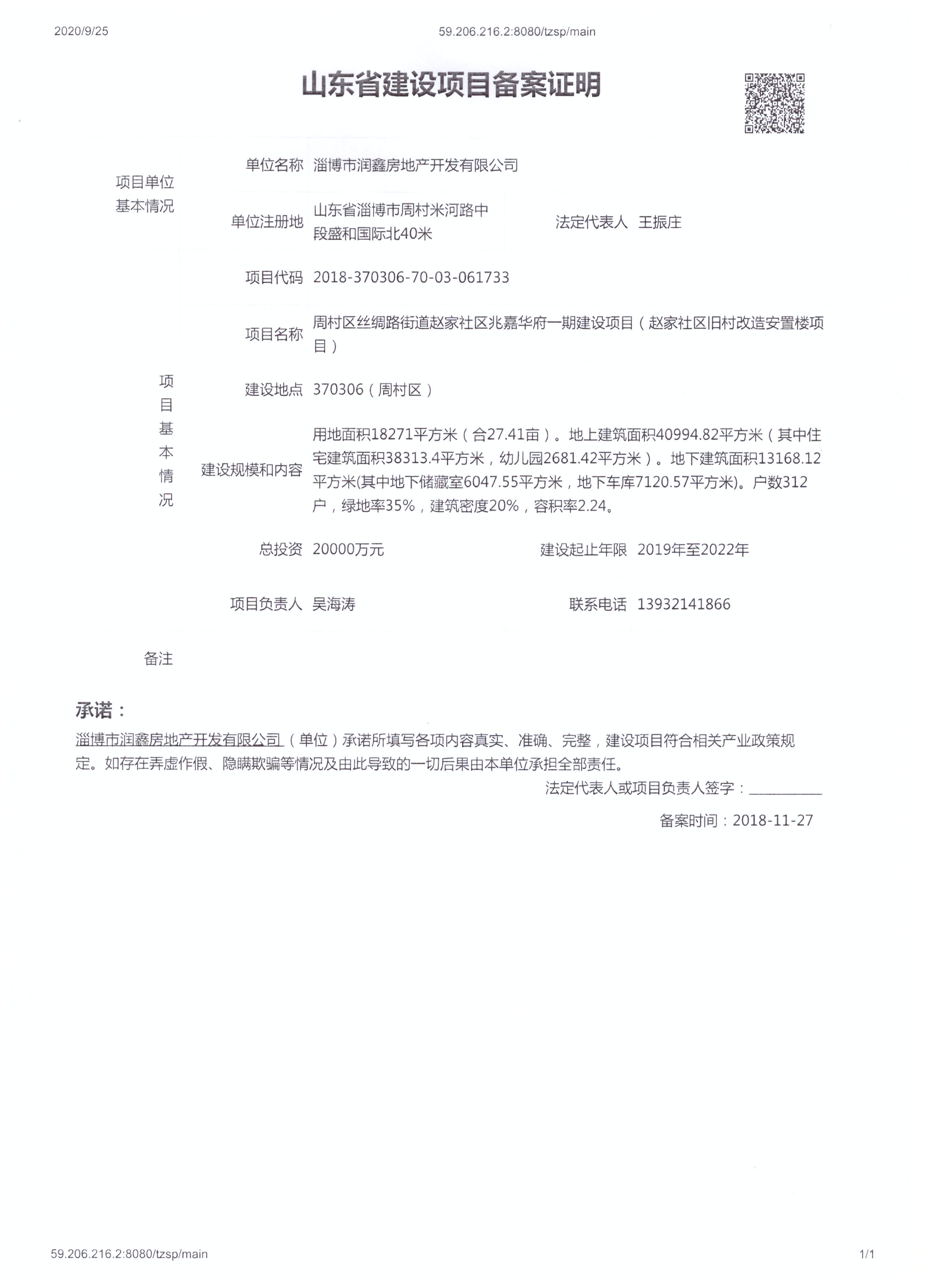 赵家社区项目项目备案证明