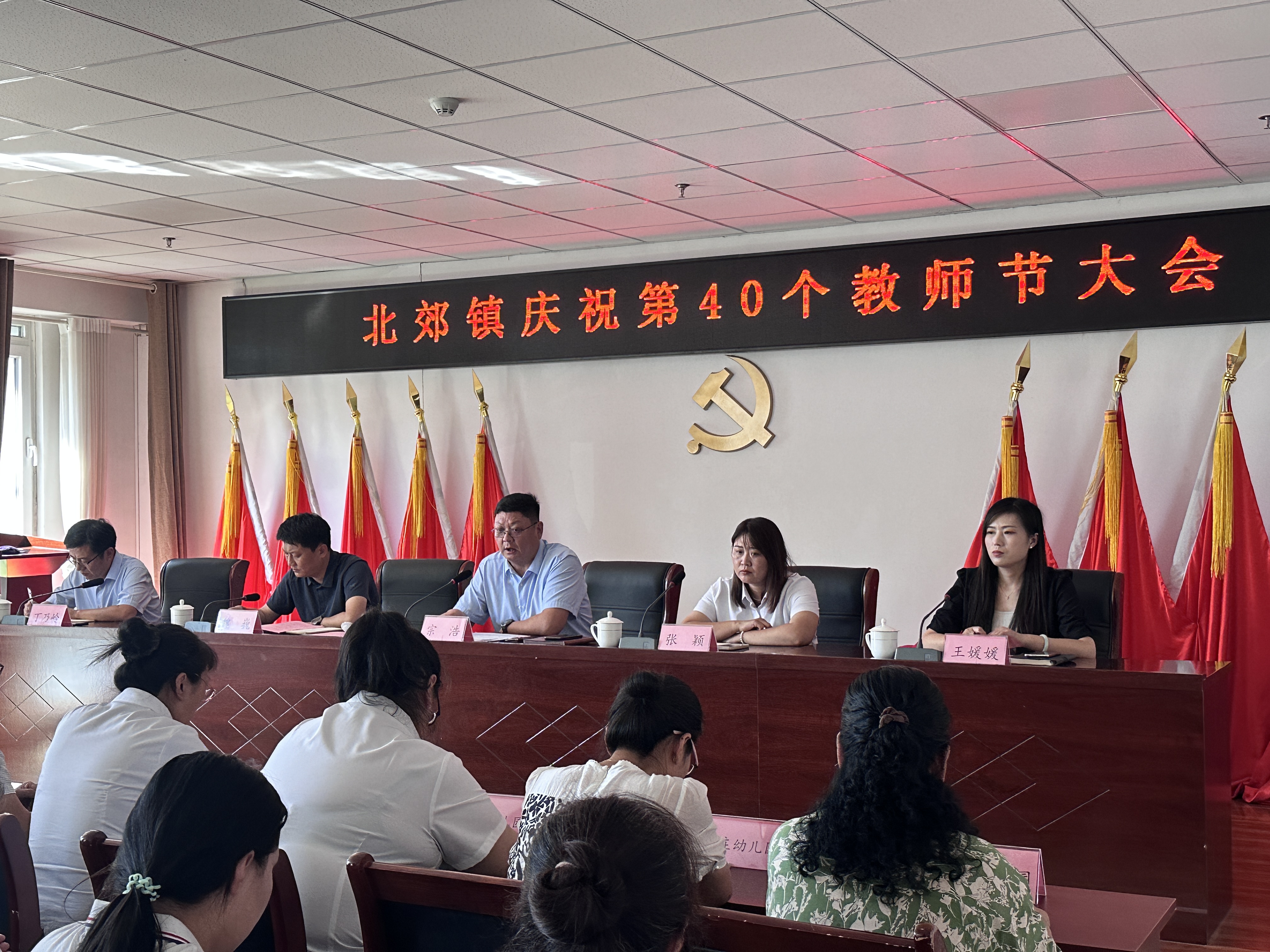为大力弘扬教育家精神,倡树尊师重教良好风尚,持续推动全镇教育事业高 质量发展,9月9日下午,北郊镇隆重召开庆祝第40个教师节大会,对为全镇教育 事业做出突出贡献的先进单位及个人予以表扬,向辛勤耕耘在教育一线的广大教 师和教育工作者致以节日的问候和崇高的敬意。