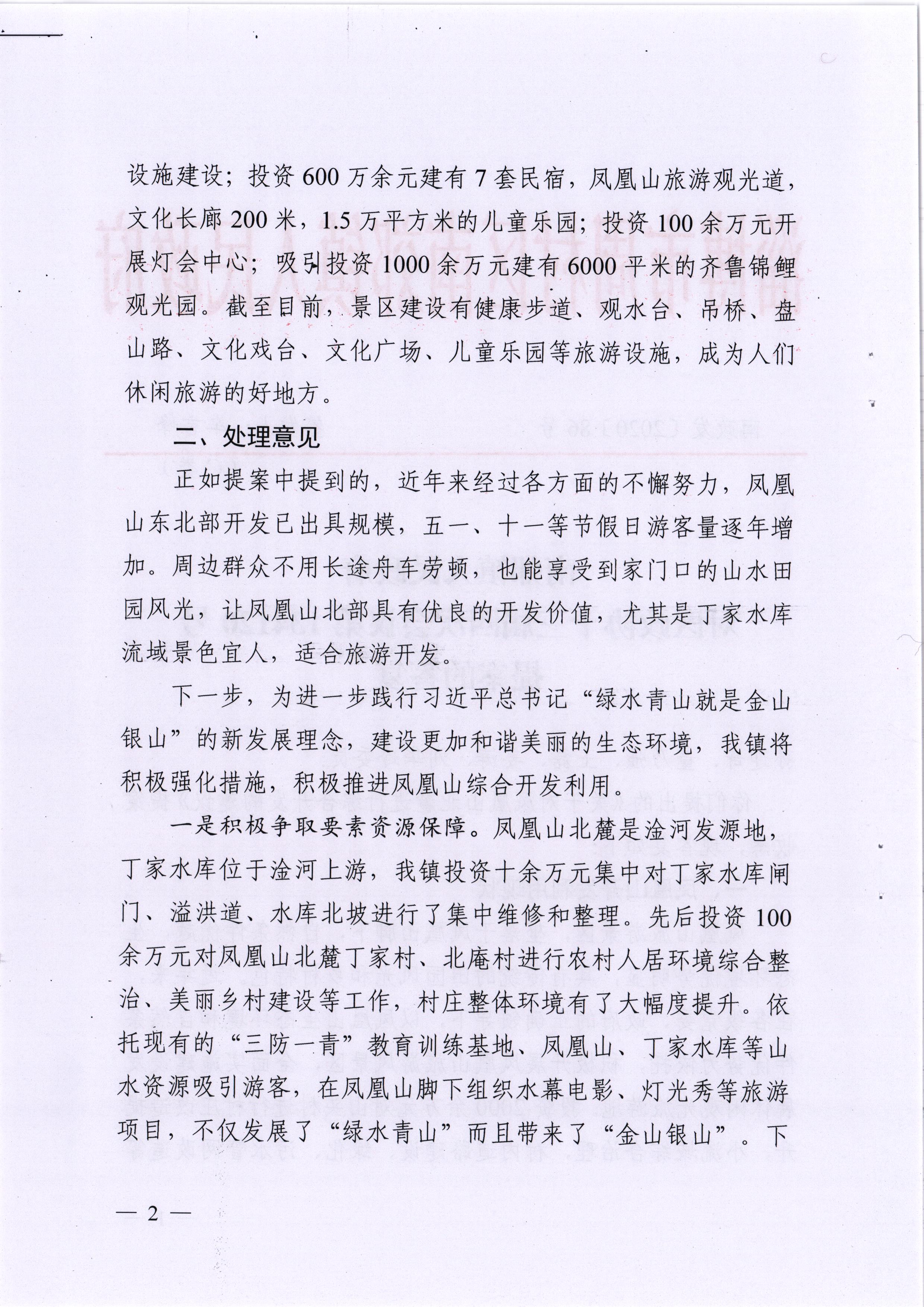 你们提出的《关于对凤凰山北麓进行综合开发的建议》提案收悉,现答复如下: