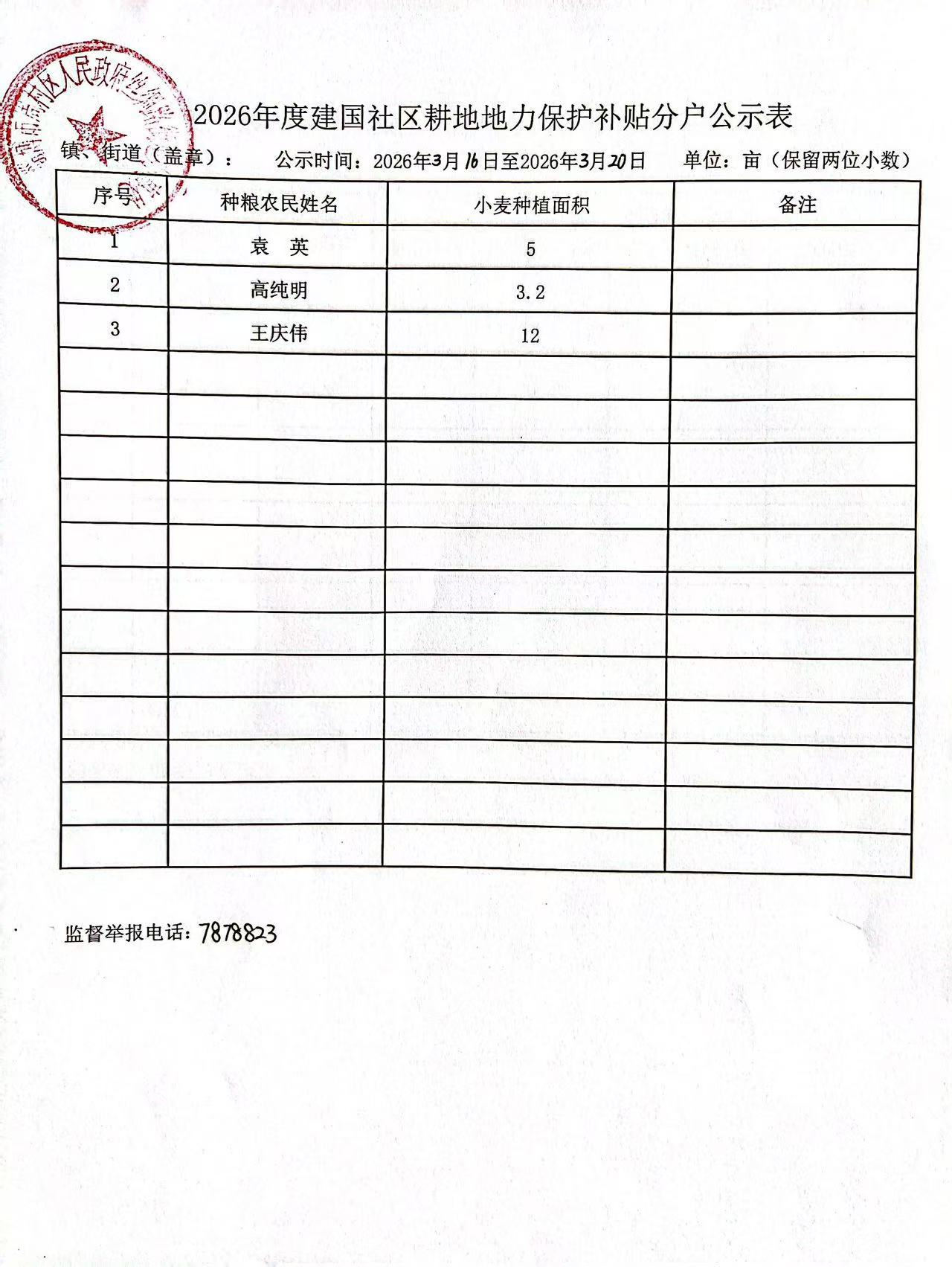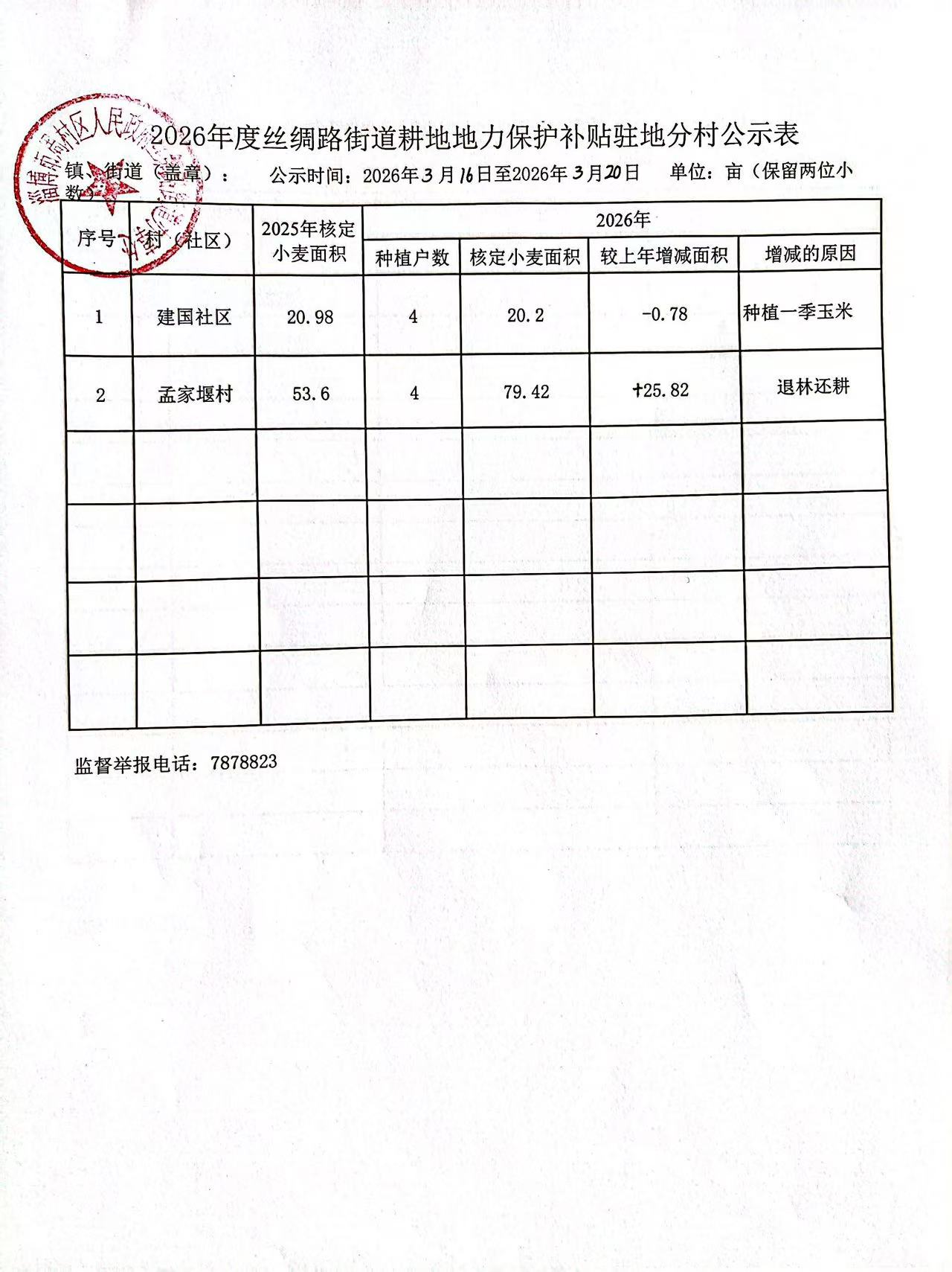 周村区丝绸路街道2026年度耕地地力保护补贴发放公示