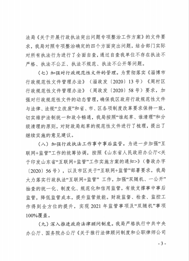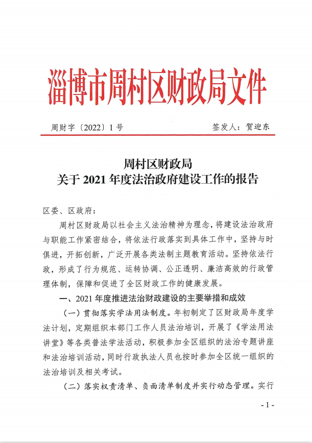 周财字〔2022〕1号 周村区财政局关于2021年度法治政府建设工作的报告.pdf