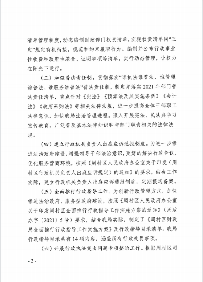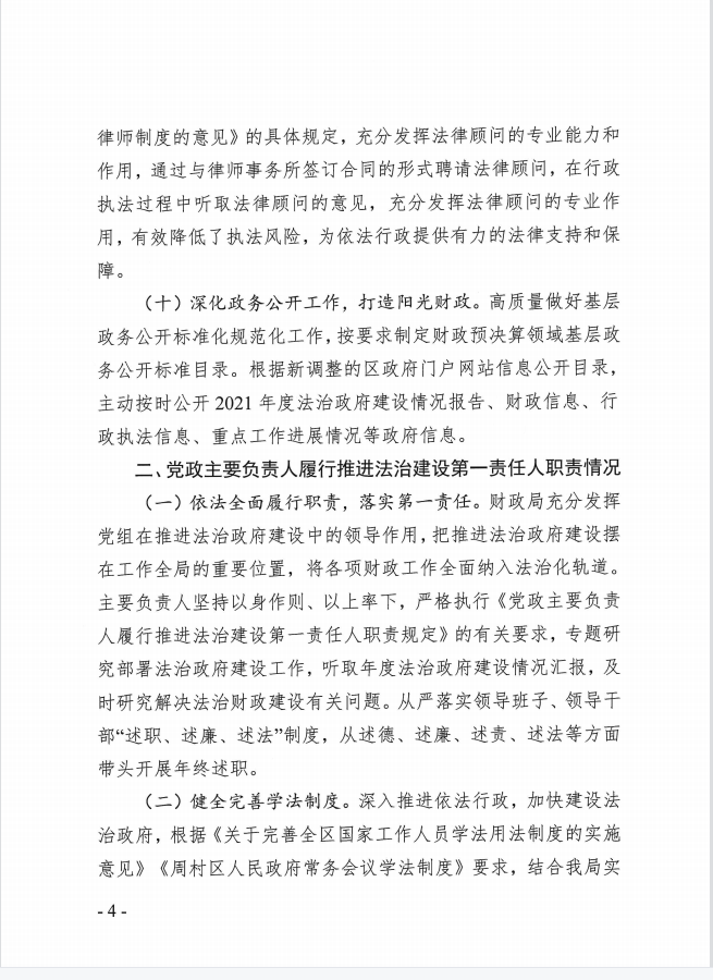 周村区财政局2021年度法治政府建设工作的报告