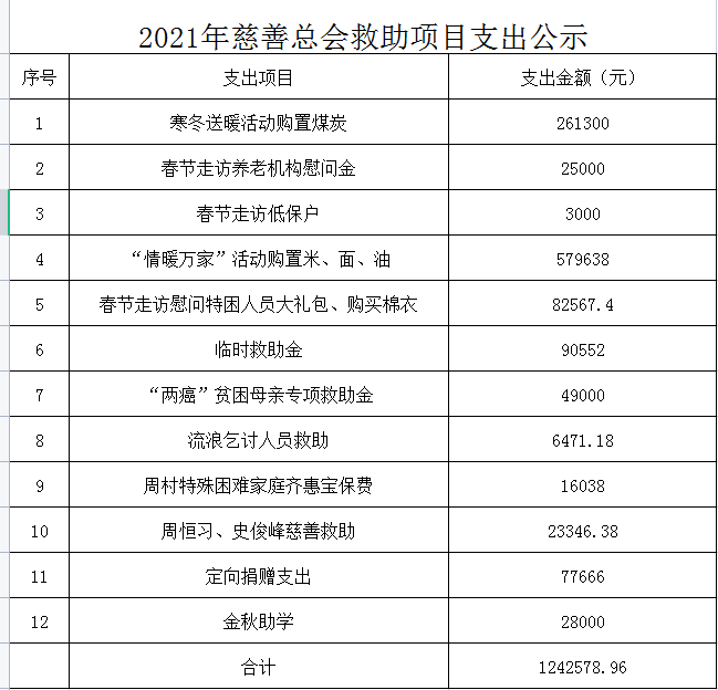 2021年慈善总会救助项目支出公示