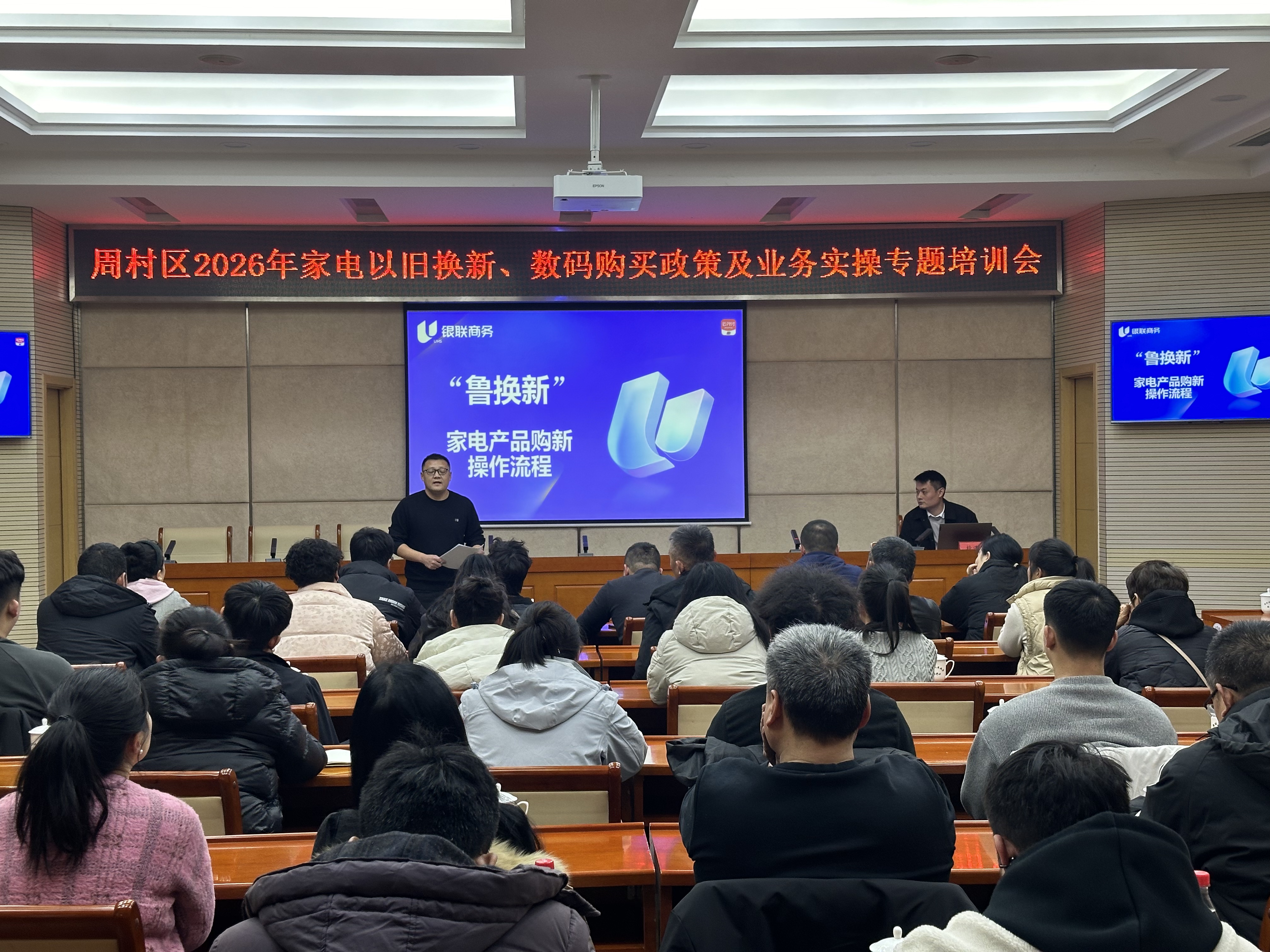 2026年1月13日,周村区2026 年家电以旧换新、数码购新政策及业务实操专题培训会在区会务中心第二会议室召开,本次培训会由区商务局组织依托银联进行培训,紧扣 2026 年国家家电以旧换新、数码购新补贴政策要求,聚焦政策落地与实操规范,共92人参加培训会。