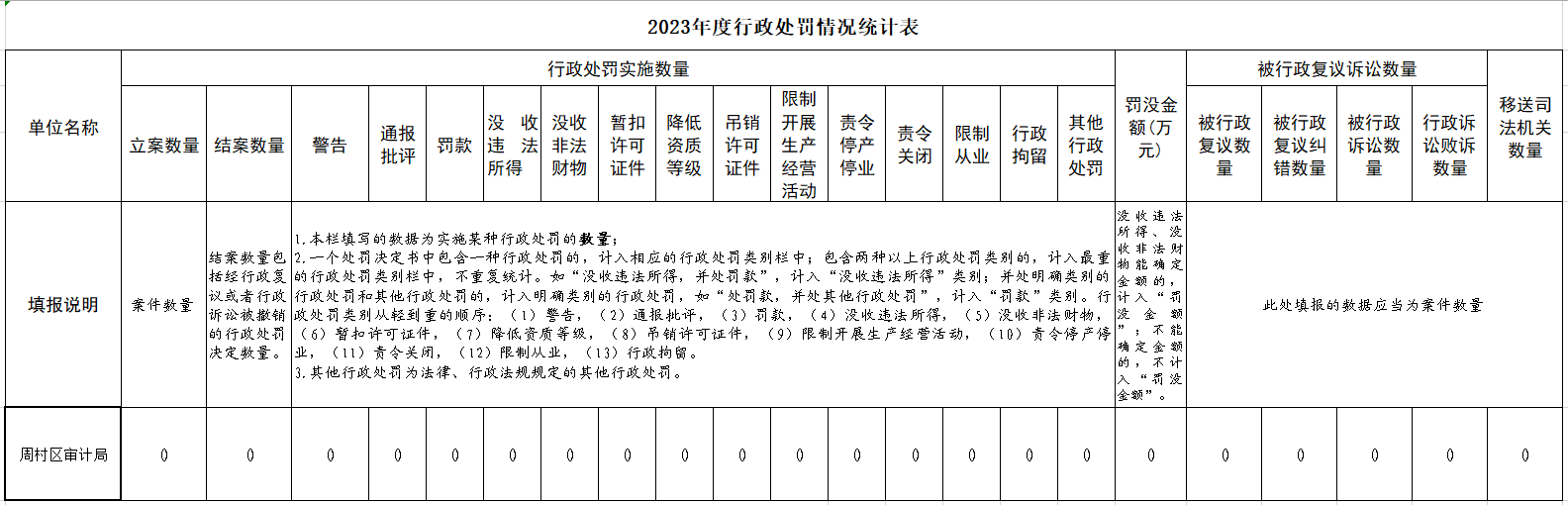 周村区审计局2023年度行政执法统计年报