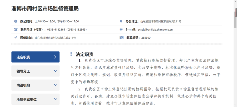 办公地址:周村区市场监督管理局(周村区新建东路211号)