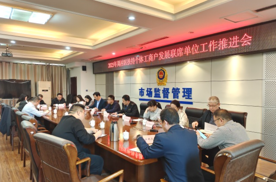 4月10日上午,周村区个私企业党委、周村区市场监管局组织召开全区扶持个体工商户发展部门联席会议,周村区发改局、周村区工信局、周村区司法局、周村区财政局、周村区人社局、周村区住建局等11家联席会议成员单位分管负责人参加会议,周村区委社会工作部有关负责人到会指导,全面部署服务年重点任务,共商服务市场主体发展良策。