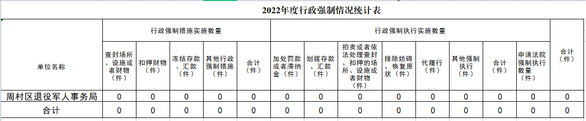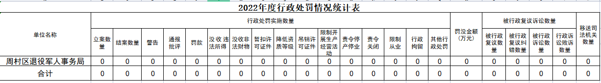 周村区退役军人事务局2022年度行政检查情况统计表