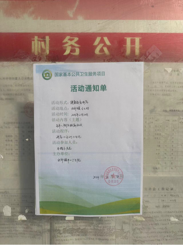 通过张贴健康教育讲座通知单、医院公众号等方式公开健康教育活动的时间、地点、内容。