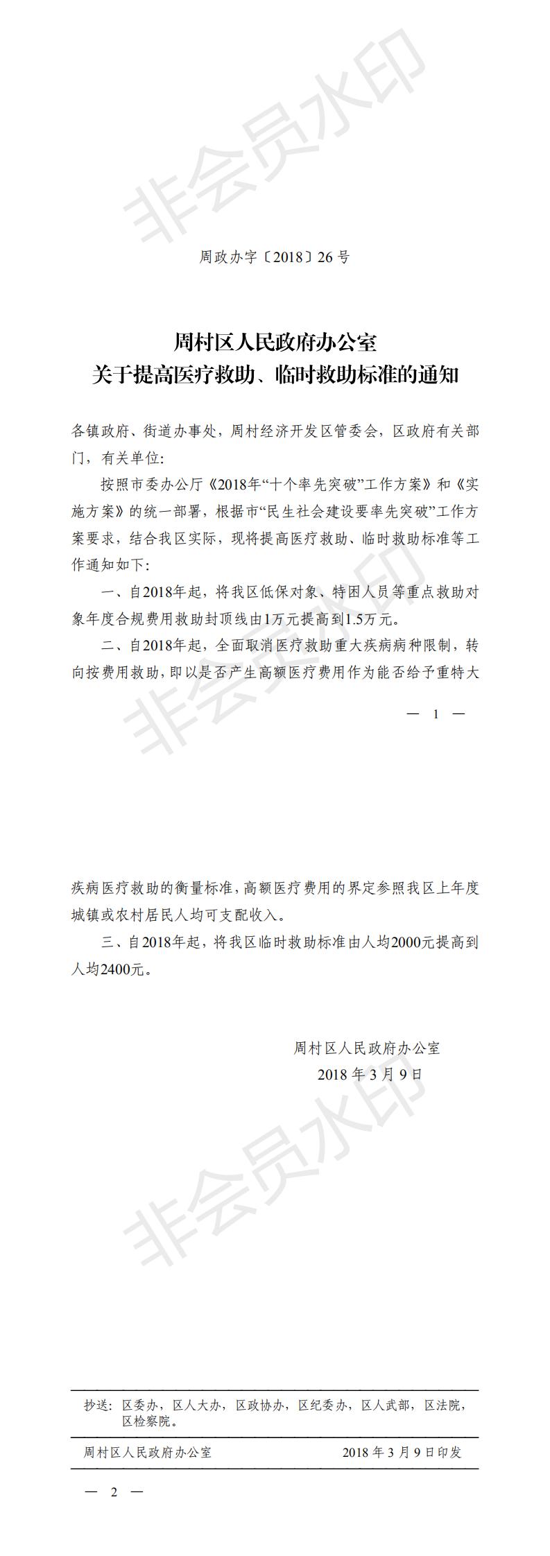 周政办字〔2018〕26号(关于提高医疗救助、临时救助标准的通知)