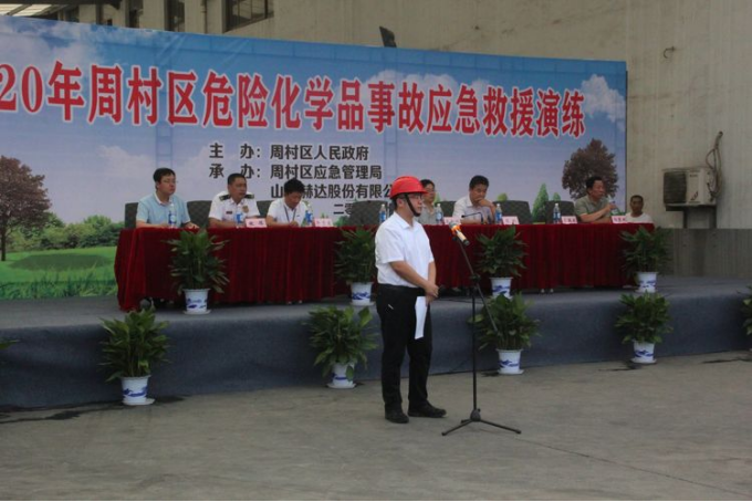7月17日上午8点30分,周村区政府在山东赫达股份有限公司开展全区危化品事故应急演练。区委常委、区政府副区长赵学同志任总指挥,区应急、公安、环保等12个部门单位参加演练。