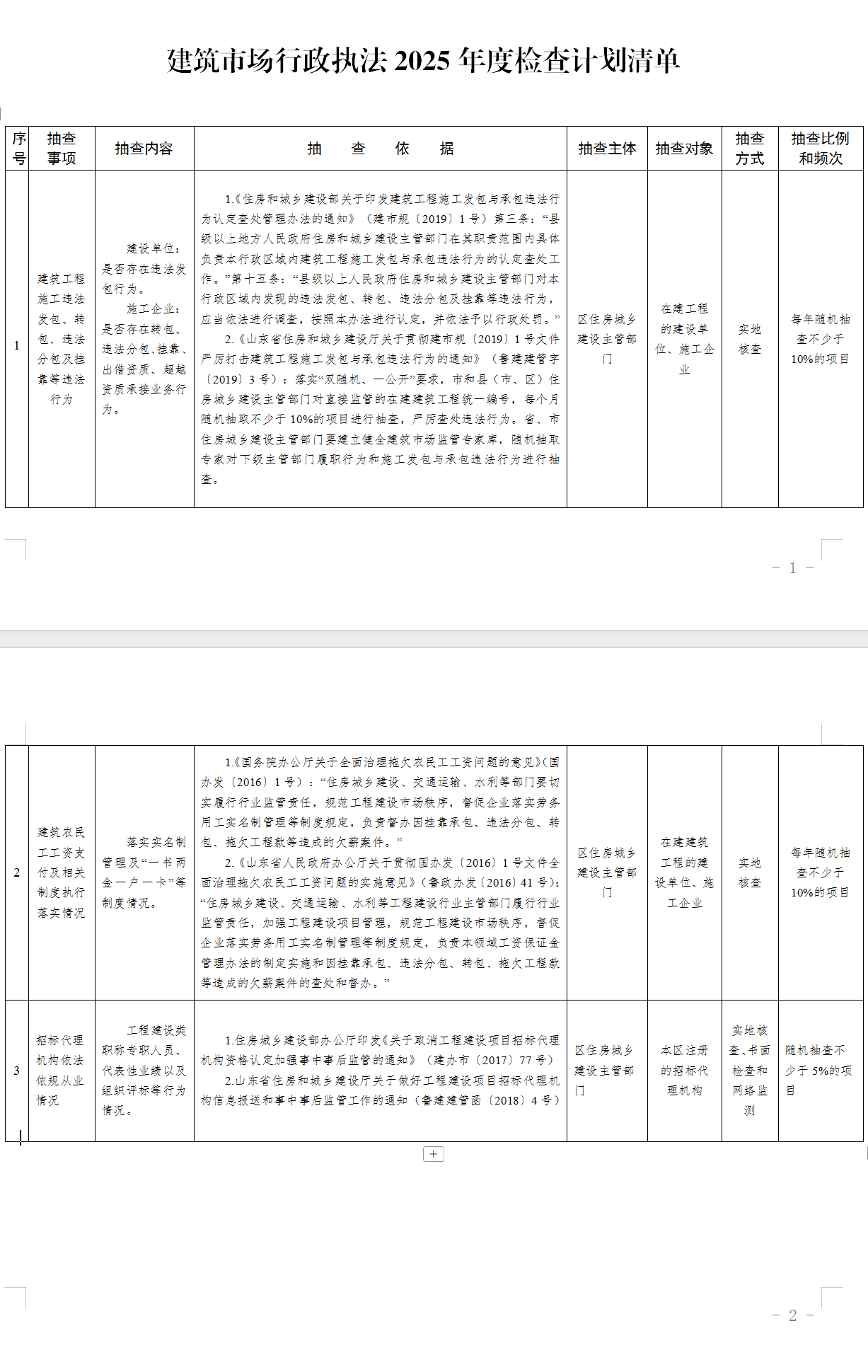 周村区建筑市场2025年度抽查计划清单