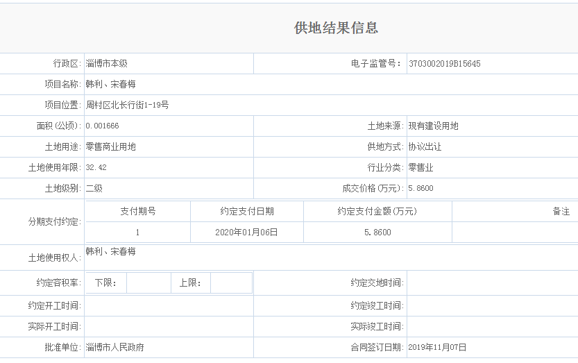 周村区北长行街1-19号土地出让结果公示(协议出让)