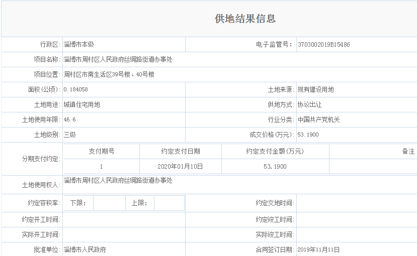 周村区市南生活区39号楼、40号楼土地出让结果公示(协议出让)