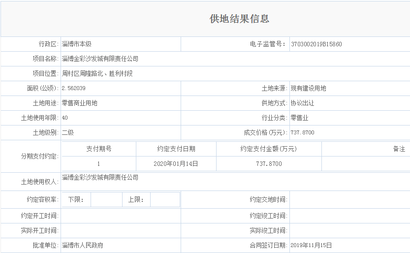周村区周隆路北、胜利村段土地出让结果公示(协议出让)