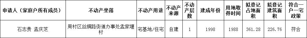 | 标题: | 关于周村区丝绸路街道办事处孟家堰村1户宅基地/住宅不动产权证首次登记公告 | ||